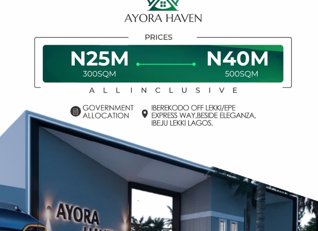 Discover luxury and comfort at Ayora Haven, an estate designed for modern living in the heart of Lagos’ fastest-growing investment corridor. With fenced plots, verified documentation, and top-tier infrastructure, Ayora Haven guarantees both peace of mind and high returns on investment.