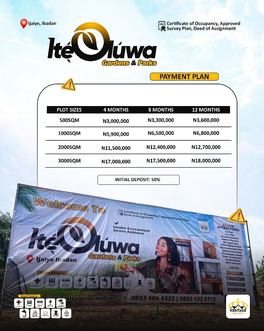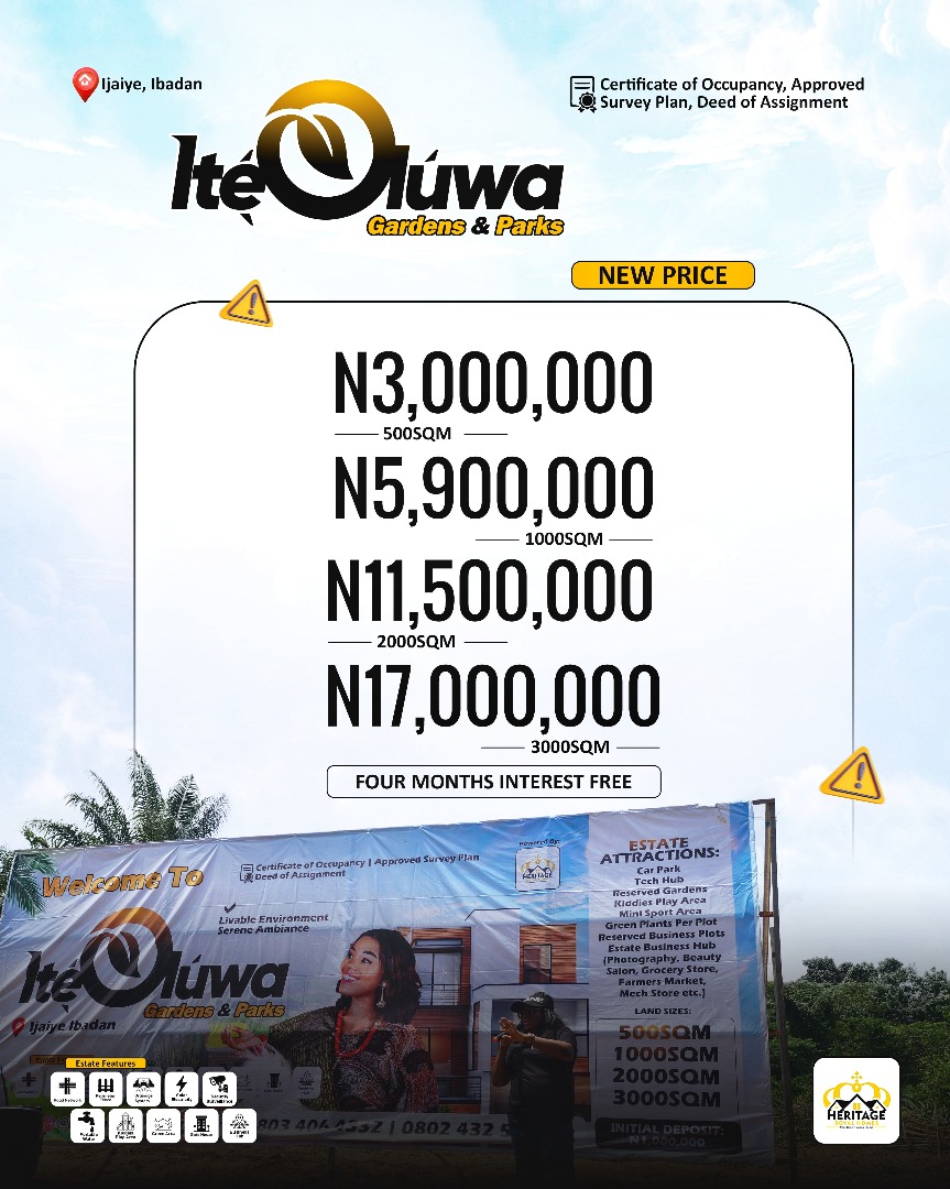 Iteoluwa Gardens offers more than just land , it delivers peace of mind with a Certificate of Occupancy (C of O), ensuring your investment is fully secured and recognized by the government.