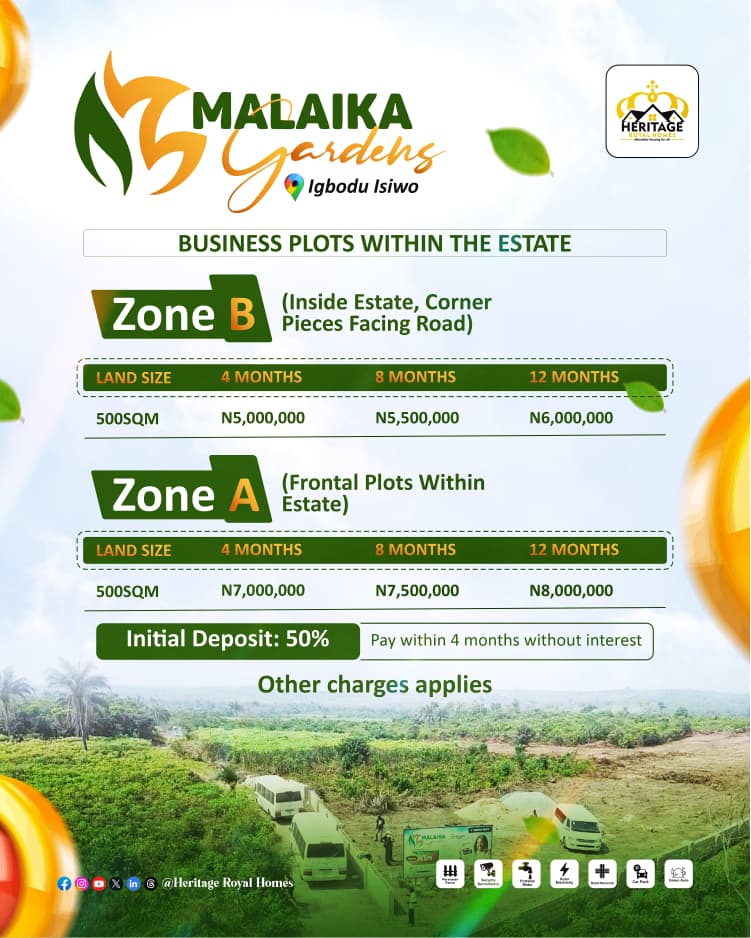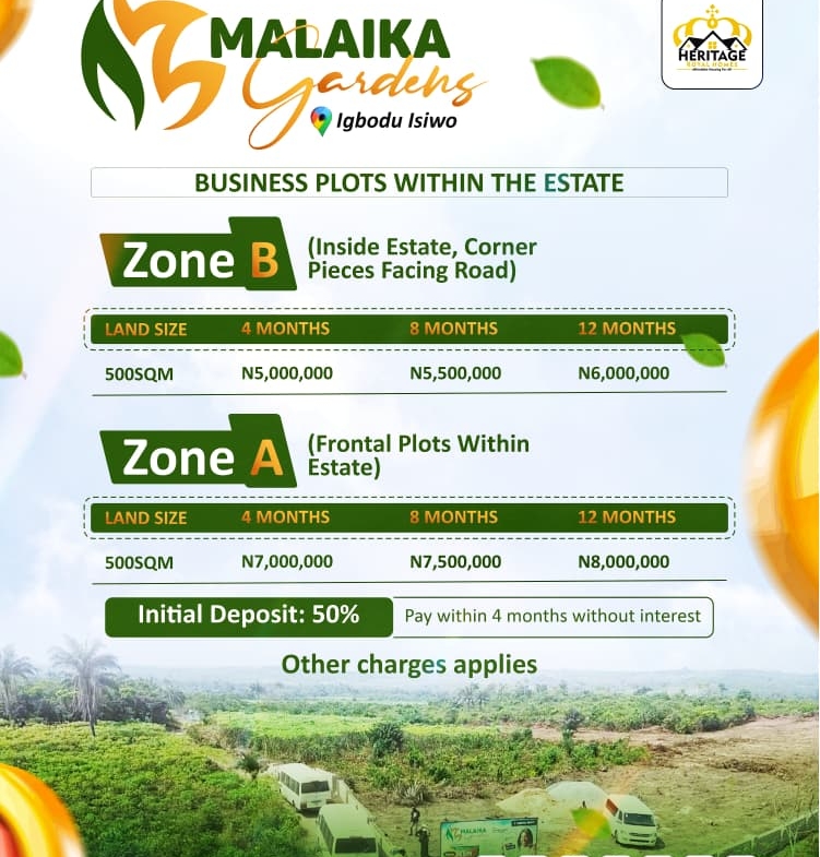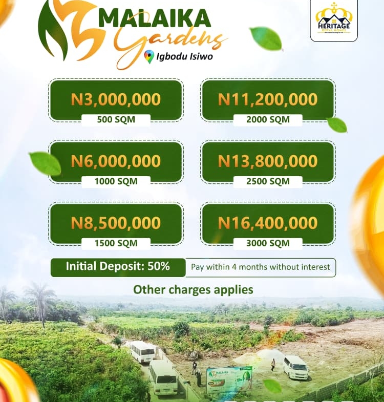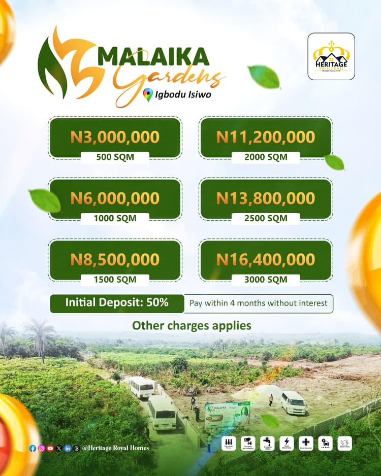 Malaika Gardens is your gateway to land ownership in one of Nigeria’s fastest-growing locations. Whether you’re investing for value appreciation or creating a family retreat, this rare opportunity offers dry, accessible, and fully documented landperfect for building your legacy.