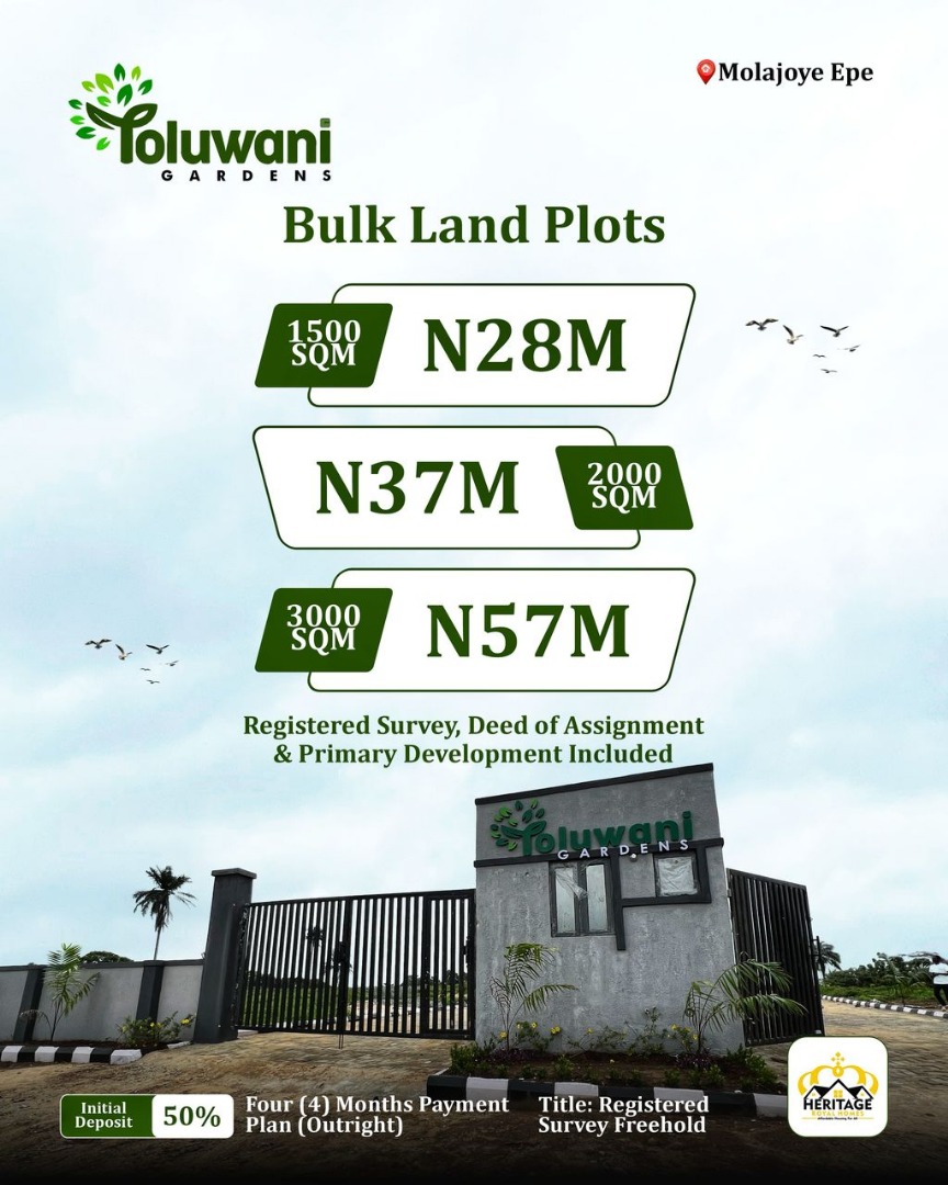 Toluwani Gardens in Myolajoe, Epe offers high-value, dry land with flexible payment plans and close proximity to major economic hubs.